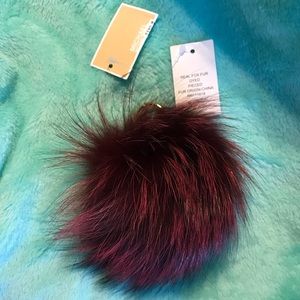 Retired Large Michael Kors Fox Fur Pom Pom Keychain/FOB/Bag Charm in Mulberry NWT. Michael Kors no longer makes dyed Fox Fur key chains/Fobs/Bag charms, they are now made from the faux synthetic fur that is not as soft or luxurious.