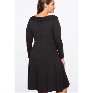 Brand new with tags, Eliquii black ponte fit and flare dress with long sleeves and wide mock wrap collar bodice, size 18 (or approx 2X equivalent however you will receive the 18 as shown). Chunky gold button details, back zipper closure. So sexy on! Check out my other listings to bundle and SAVE!