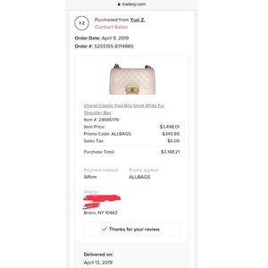 Last photo is my online receipt from Tradesy.