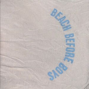 A cute faded sandy color t-shirt, baby blue colored print! Super cute and trendy, only wore it once, super comfy too. Great for a day to run some errands, coffee break, or the beach🌴
