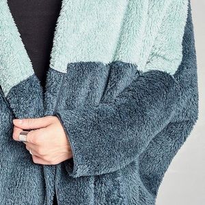 @sherden1205 Hi Sherry, this is a cozy, stylish colorblock jacket. Two shades of blue ๐