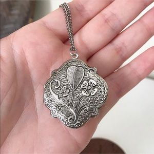 Vintage yellow ceramic & silver metal hand painted REVERSIBLE floral locket pendant necklace. Signed by artist “Smith”. In excellent working condition. The back of the locket is just as gorgeous as the front side. Holds two significantly sized photos inside (as far as lockets go). This is from my personal jewelry collection but I just never get around to wearing it and it deserves to be seen!
