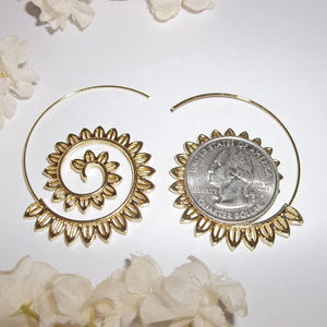 Christmas present Valentine Mother's Day birthday anniversary fashion accessory dangly dangling hanging unique funky artisan hand crafted fashionable trendy stylish styling statement threader swirl ethnic unique funky round bohemian big large hooped woman girl modern fashion accessory Zen drop maximalist XL L Plus Size Maximalist Gift Idea for her present goth gothic witch witchy wiccan mod huggie wvluckygirl whimsigoth core aesthetic