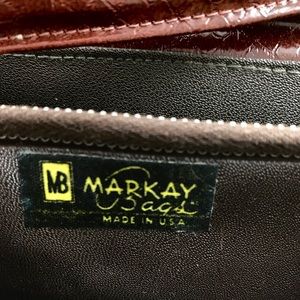 1950’s brown vegan friendly faux leather snakeskin purse with gold metal trim. Excellent vintage condition. Vegan friendly faux leather embossed to look like shiny snakeskin. Snap closure on front. Opens to a clean interior that is divided into two sections by a full zipper pocket. Adjustable strap can be made shorter or longer, or can be removed to make the bag into a clutch. Measures 9.5” wide X 6.5” tall X 3” deep. Made in the USA.