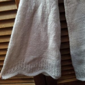 Features: Cream colored with bell sleeves. "Hole-punched" design at top and bottoms. Tie at back of neck