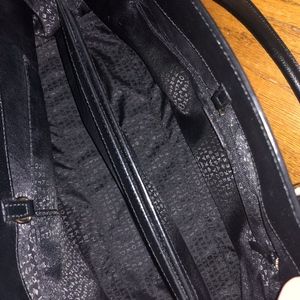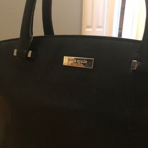 Black pebbled leather Kate Spade bag with silver hardware. Can worn as a shoulder bag or carried with shorter handles.