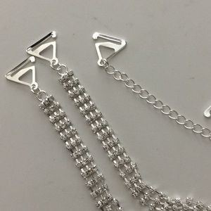 Fun, sexy adjustable jewelry bra straps. Can be wear different ways. Just unhook your every day straps and replace them with jewelry straps to achieve sexy look. Total length: 19 inch. The jewelry part is 11 inch long plus 8 inch of chain. They are worn the same way as regular bra straps.