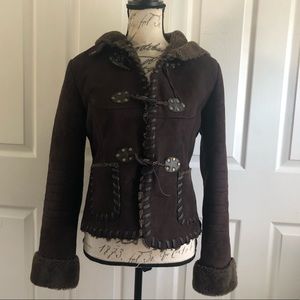 Via Spiga Faux Suede Leather Hooded Fleece Coat