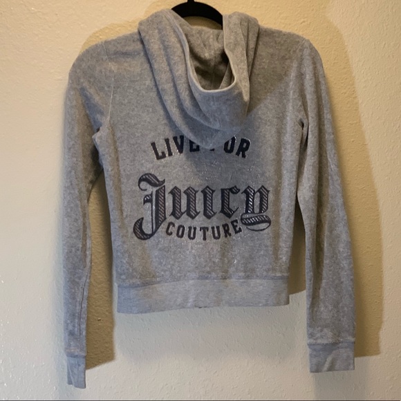 Cute gray zip up hoodie for girls with a pretty print detail on the back.