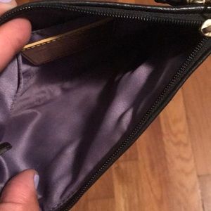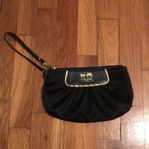 Black Coach wristlet with gold detailing in great condition. Purple lining on the inside