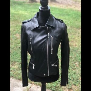 Exquisite leather jacket from Avec Les Filles. Silver zipper hardware is beautiful & creates accents all over the jacket. Brand new & ready to wear.