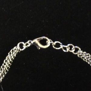Vintage Gold-tone Necklace with an intertwined circular motif. The necklace has triple strands of link chain ending in a lobster clasp.