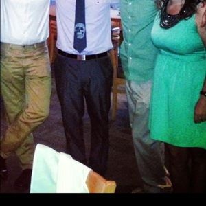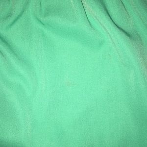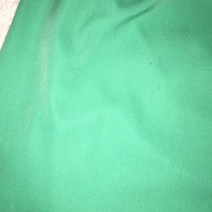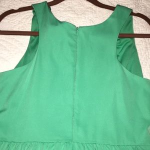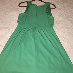 Francesca’s Green cocktail dress. Racerback with zipper. Green, black and silver embellished neckline. Lightly worn. Small pen mark and other spot as shown in pictures. Not noticeable when on due to pleating.