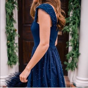 Gal meets Glam Delores pearl mesh and crepe dress