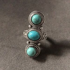 New! Turquoise Ring with three stacked turquoise stones in silver tone. Ring will be energetically cleared by a reiki healer. 🙌