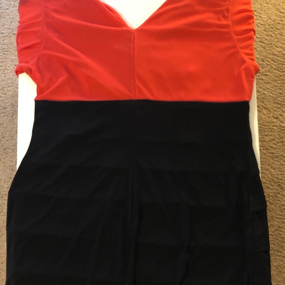 Black and Coral ruffle dress