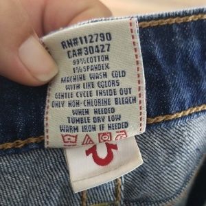Medium-dark wash in color with nice fading, gold colored stitching, rear flap pockets, and good stretch.