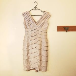 Adrianna Papell Champagne Ruffled Dress sz 4P