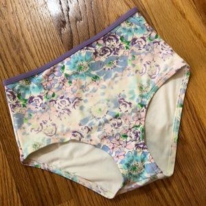New with hygienic liner tag in tact, Aerie High Waisted Floral Print Bikini Bottom. Retro pretty! The throwback high waist you love, even better in swim. Comfy nylon with the right amount of stretch