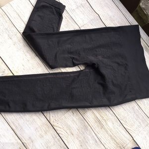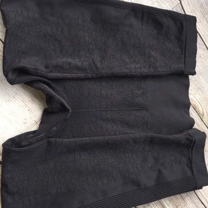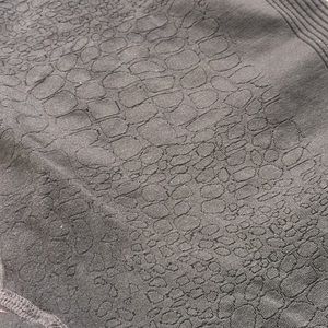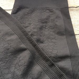 Fabletics pebble textured leggings. Material is sort of thick but these are for every day not for exercise (in my opinion) they aren’t “squat proof”. Wear, use and imperfections as shown. I did remove the tag because it was annoying however these are a small but very small. They doe stretch a quite a bit.