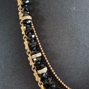 - Black Beads, Gold Tone Chains and Rhinestones.