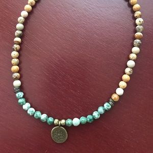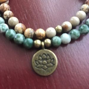 Unisex gemstone bracelet with bronze lotus. I also have one very similar that is twice as many beads and wraps around the wrist four times
