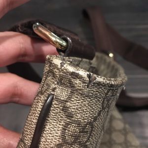 100 % authentic! Gucci brand. Good used condition. Inside is very clean. Has some cracks / tears as featured on the pictures. Please see check all the pictures closely. No stains, no holes. Zipper works perfectly. Dimensions: 13.5 x 11.5 (LxH). Shoulder strap drop 25 inches (longest adjustment). 100% authentic. No documents, but will go the Posh Authentication first. Comes with its original dust bag.