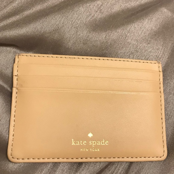 Kate Spade card holder in beautiful hot pink color! The outside has 3 card spots and the inside opens up for additional space. This is perfect for a small clutch and adds a fun pop of color!