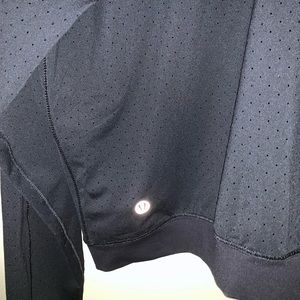 Black Lululemon perforated jacket in size 10. This jacket give you light coverage without compromising on ventilation, and is made out of lightweight four-way stretch fabric that is sweat-wicking and quick drying. Jacket zips up the front and has two secure pockets that zip and an internal media pocket for your device.