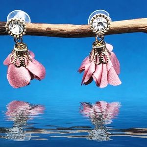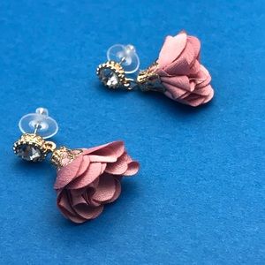 Rose silk flower earrings with rhinestone
