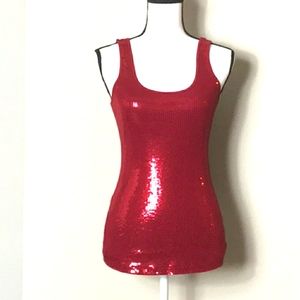 Red, sequin, sleeveless, tank top, women's, small, shiny