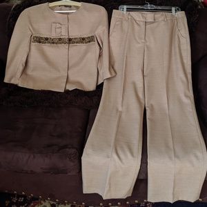 ππTWO PIECE, METALLIC ACCENTS, JACKET HAS A BAND OF BEADS BORDERED WITH TINY SILK RUFFLES AND A PRETTY HAVE BOW, SNAP HIDDEN CLOSURES, ππ SLIGHTLY LOW WAIST RISE PANTS, WITH FRONT SLANT POCKETS,ππFULLY LINED, πππ POLYESTER, VISCOSE, METALLIC SPANDEX BLEND, πππ TOTALLY AWESOME πππ