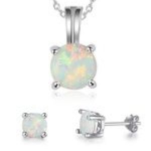 17" 925 STERLING SILVER CHAIN with 3 White Fire Opal Pendant and Earrings