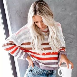 Casual Chic is the game in our Zaylee Striped Sweater Top! A knit crochet, in shades of blush, rust, lavender, and blue, shapes this cute sweater with long, sleeves, crew neck, and a relaxed fit. Pair with a tank top and your favorite denim for a totally adorable 'fit!