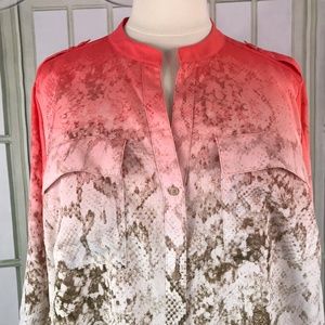 Calvin Klein Womens Blouse Button Front Mock Neck