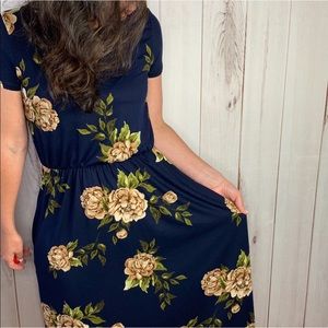 This stunning short sleeve dress is elegant yet comfortable with its beautiful color combination and incredibly soft fabric. Accessorize with your favorite belt, or go full glitz with a long necklace and bangles.
