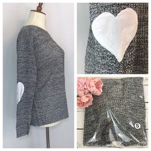 Gray Knitted Sweater with White Heart Patch Sleeve