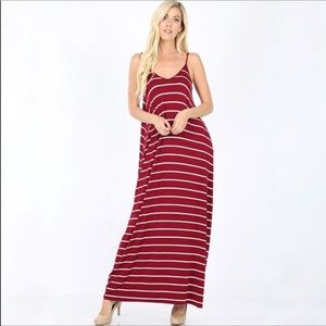 V-neck over-sized maxi dress with side pockets and fully adjustable straps.