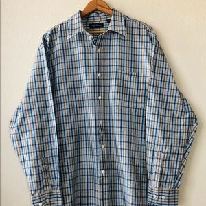 Oleg Cassini Long sleeve button down shirt. XL, collar 17, inches shoulder to shoulder 21, inches, sleeves 24 inches, Very good condition.