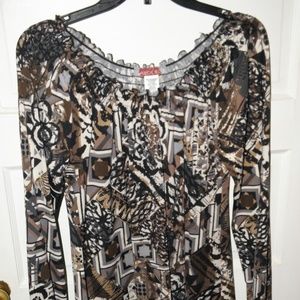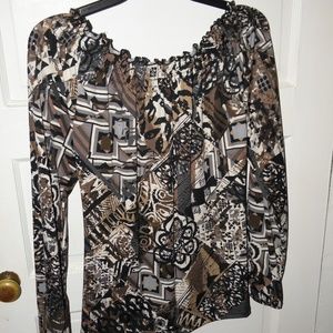 CAROLROSE BROWN/BLACK/WHITE L/S BLOUSE~MEDIUM
