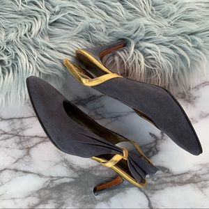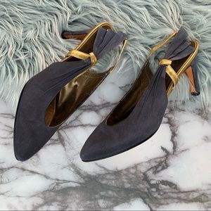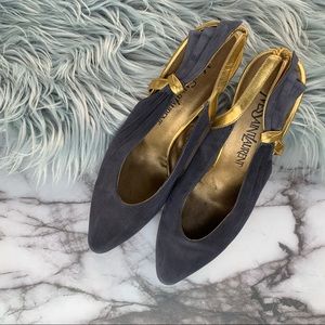 SOLD✨VTG Yves Saint Laurent Navy/Gold Fabric Sling