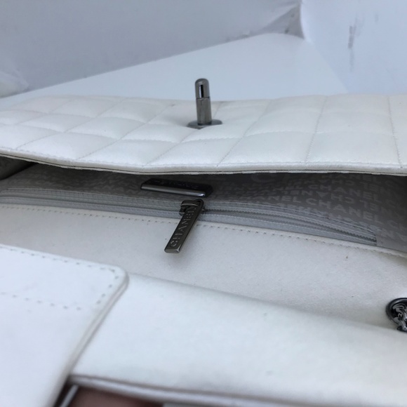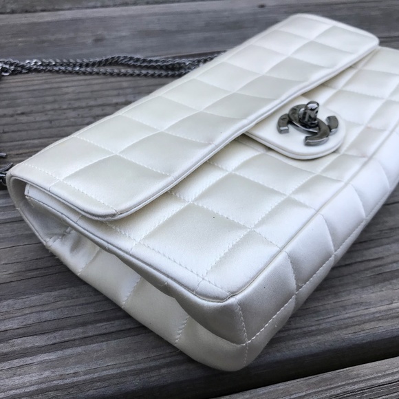 Authentic Chanel Mini Bag Clutch with Metal Chain Strap Pearl Satin Quilted Bag