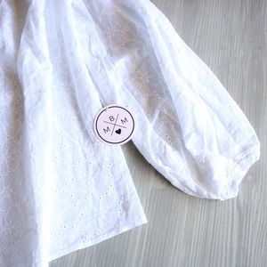 White Off the Shoulder Eyelet Puff Sleeve Blouse