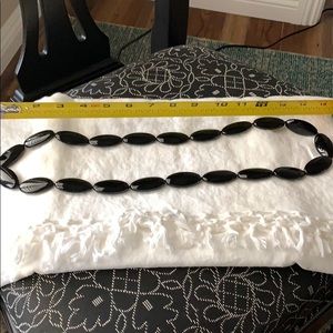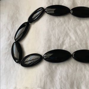 Purchased from Tommy Bahama store a black onyx bead necklace. Slips over your head with no closures. Approx. 28” round. This is a weighty piece. The stones are high polished so very clean and shiny.