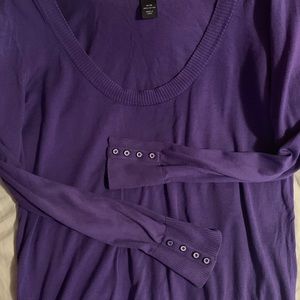 Beautiful purple Lane Bryant sweater, scoop neck, ribbed pattern around the collar, bottom of sweater and sleeves. Three buttons on each sleeve for added detail, excellent condition.