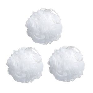 Set of 4 premium white mesh sponges. Luxury bath and shower sponge mesh puff with gentle body exfoliating and scrubbing power remove dead skin cells. Superior size and Quality bath form mounds of suds with soap or shower gel. Soft and dense mesh sponge. Brand new with tag.