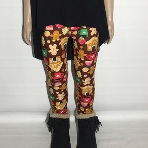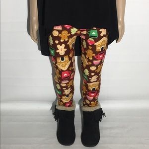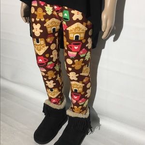 NEW Girls Kid Christmas Gingerbread Print Leggings
