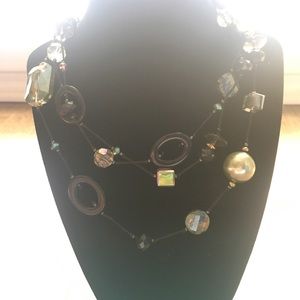 Gorgeous 24” long black and green beaded necklace with 4” extender lobster claw clasp. Excellent preowned condition. No flaws or damage. Smoke free home. This piece is extremely versatile. Can be worn long for the “little black dress” sexy look or worn layered up for a day at work.