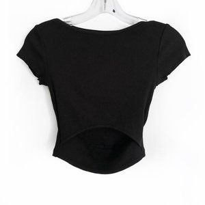 Ribbed black stretchy crop top by Forever21. Has a cutout on the waist.