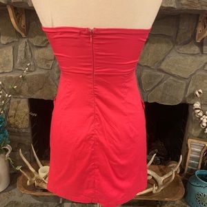 Hot pink party dress with extra ruffles on bust. This dress has pockets! Need I say more? Worn once to dinner on a cruise. NWOT. Smoke free & pet free home.